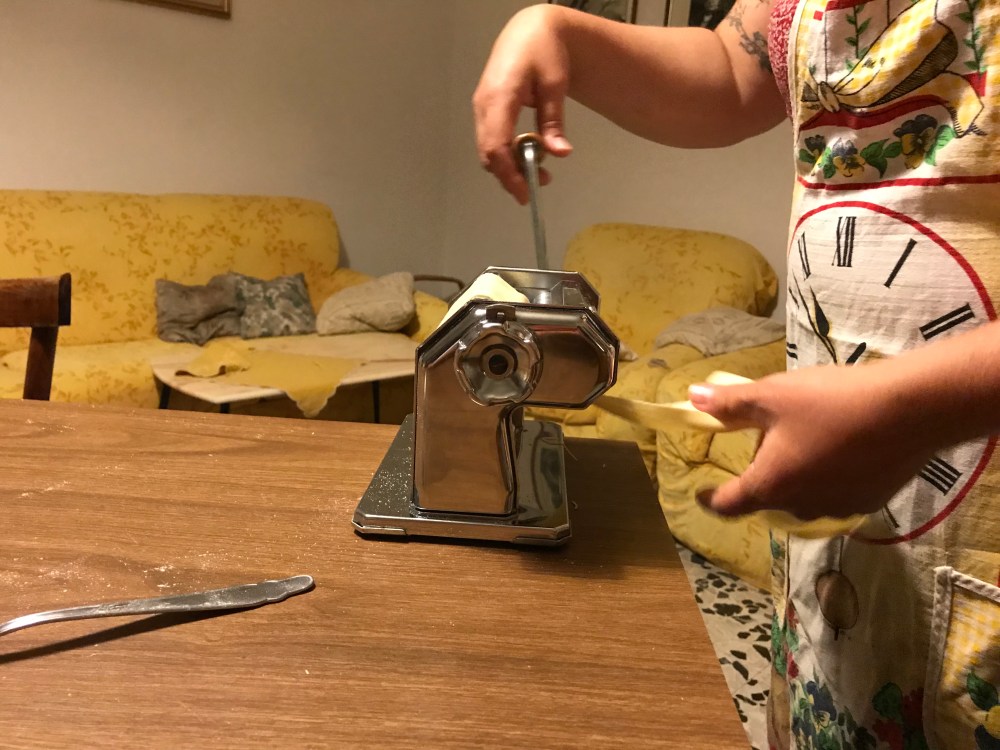 I have a well-used, old-fashioned and Italian pasta maker that my mom gave me twenty years ago. It’s part of my heritage and a staple in my family. My parents have one, my brother has one, and my aunt and uncle and all of my cousins on the Italian side each have their own pasta maker.