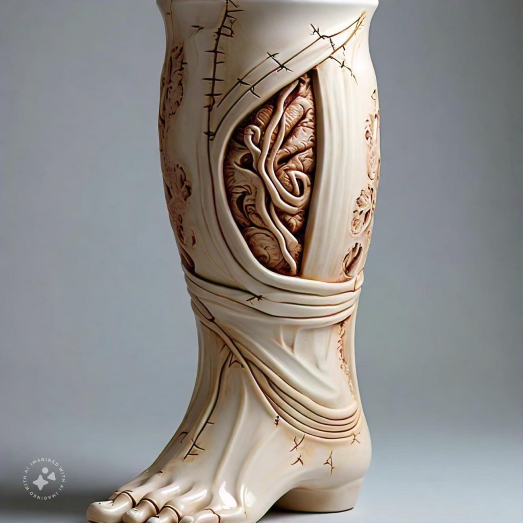 The pieces I’ve made since my injury carry those stories. One of my favorites is the porcelain vase I’ve started, inspired by my leg, its fragility, its scars, its strength. It’s a deeply personal piece, a blend of wheel-thrown and hand-built elements that reflects my own physical and emotional journey. As I shape the clay, I’ve been considering the parallels between my healing and the process of creating: the attention to detail, the frustration when things don’t go as planned, and the satisfaction of seeing something whole emerge from mud.