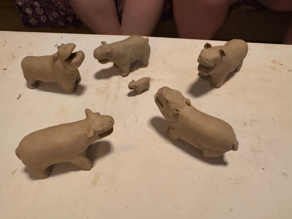 At home, the healing continued in a different way. My living room became an impromptu studio one evening, when a few friends came over with clay in hand. We spent hours creating small sculptures of Moo Deng, a baby hippopotamus in Thailand who went internationally viral on social media, and laughed at our own attempts to capture her character. It wasn’t about skill or perfection, it was about the joy of creating together. Those moments were medicine. They brought laughter and connection back into a life that had felt so focused on pain and recovery. The Moo Deng sculptures have become a reminder of resilience, whimsy, and the simple power of being with people who care about you.