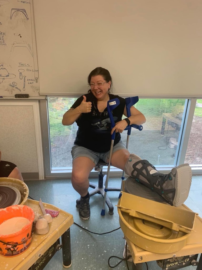 I owe so much to my community. My students who went out of their way to pick me up week after week. My friends who filled my living room with laughter and craft nights. Even the strangers who offered small acts of kindness, like holding a door open or offering a word of encouragement when they saw me struggling with my crutches. All of them contributed to my healing in ways big and small, and their care became as much a part of my journey as the clay beneath my hands.