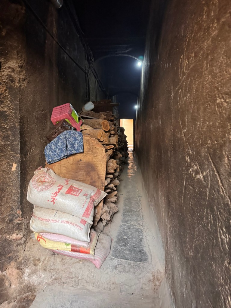 The path to the women’s hammam took us through a tiny corridor lined with piles of chopped wood and a man tending to an enormous furnace. We walked alone down empty stone hallways until we found the entrance. As we stepped into the dimly lit space, it was as if we had entered a timeless ritual. The air was dank with light steam and the faint scent of old stone walls, black soap, and smoke from the wood-fired furnace. Women shuffled around barefoot, chatting and arguing in Arabic as they filled buckets with warm water from taps in the stone walls. We were guided by hand and told to sit on the floor on thin mats amongst a group of naked women.