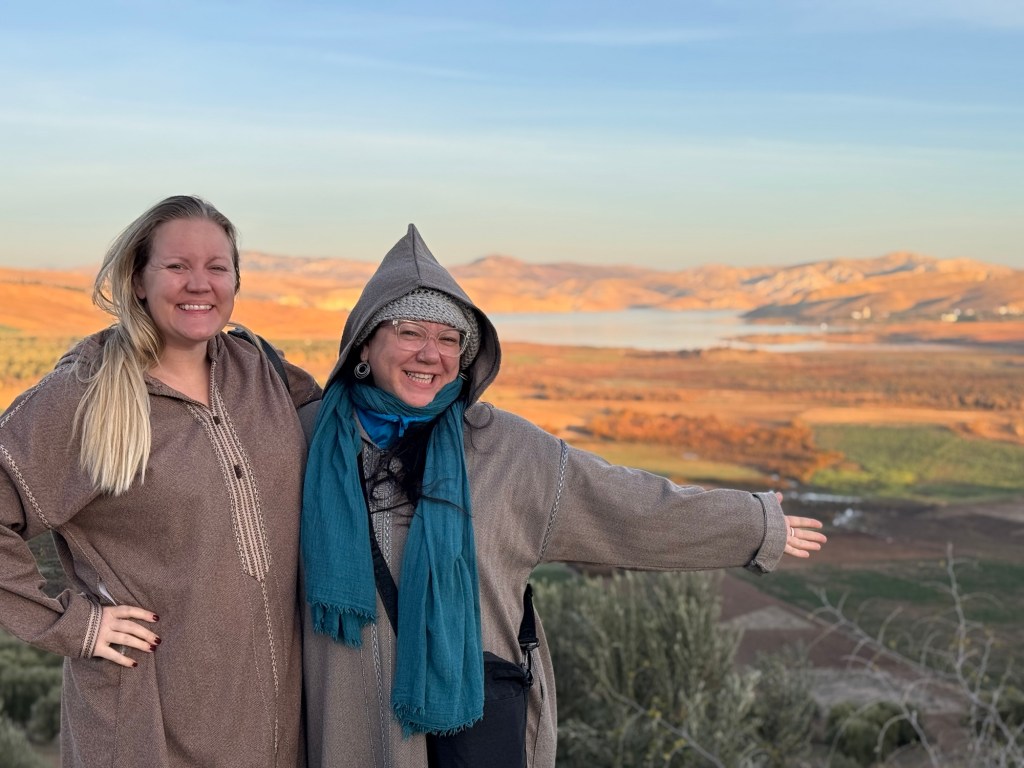 The djellabas quickly became our go-to outfits for the rest of the trip, especially in the desert. Their cozy hoods kept the chill at bay during cold Moroccan nights, and the breathable fabric worked well for layering during the day. But they weren’t just practical, they were clearly stylish, too. Everywhere we went, locals complimented us on them, often stopping to say how beautiful and Moroccan we looked!